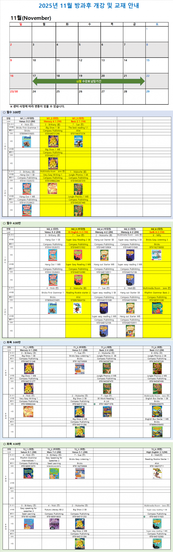 2025년 11월 방과후 일정 및 교재안내(월수반/화목반)