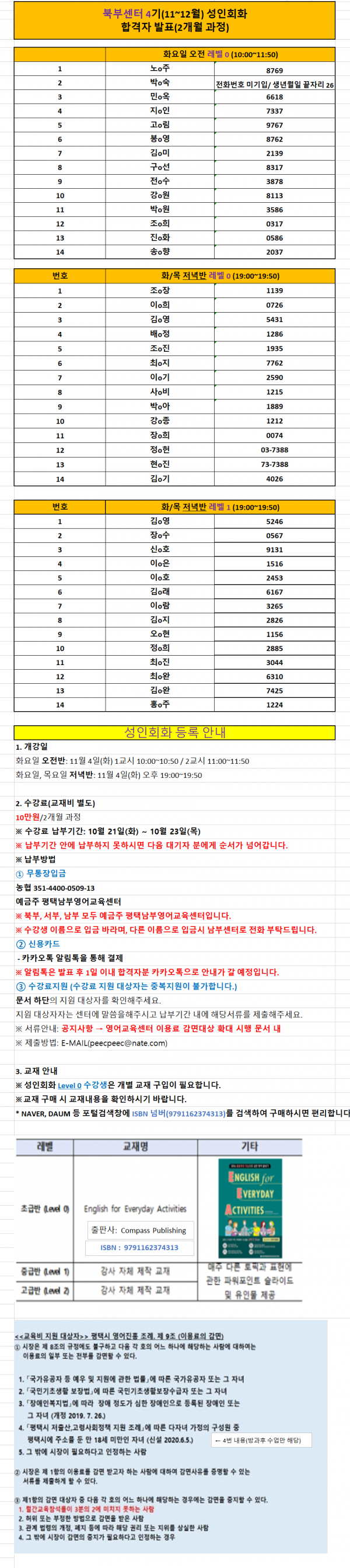 2025년 성인회화 4기 북부센터 합격자 발표 (문의: 031-8094-4702)